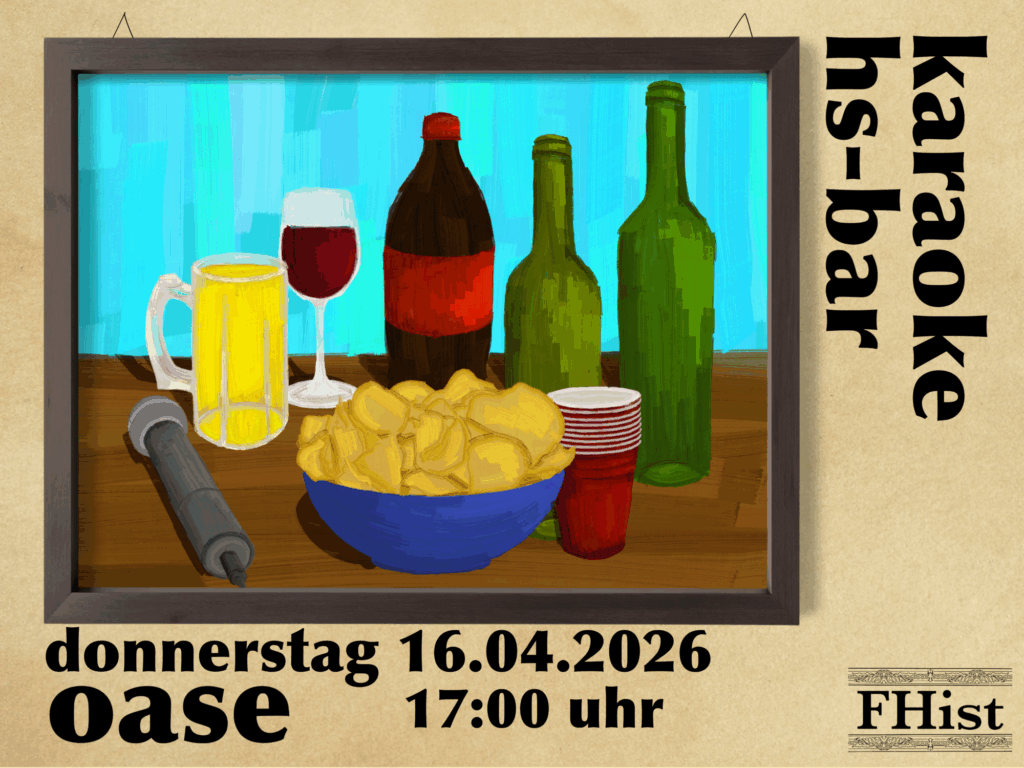 Wir haben auch dieses Semester wieder ein tolles Angebot mit unseren HS-Bars, den Fachvereinstreffen und der einen oder anderen Exkursion. Informationen dazu findet ihr im Kalender und im weiteren Verlauf des Semesters über unsere anderen Kanäle. Viel Spass und Erfolg im Studium!
