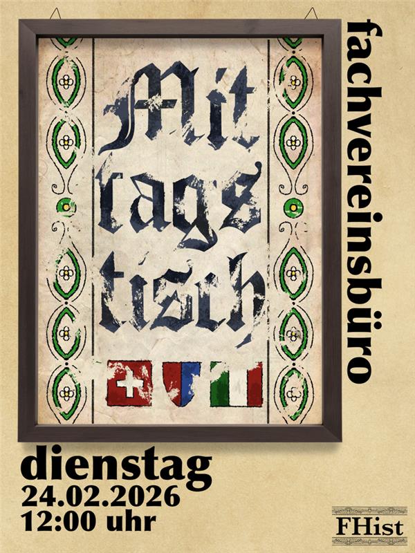Wir treffen uns alle zwei bis drei Wochen im Fachvereinszimmer, um ausgewählte, einfache Menüs gemeinsam zuzubereiten und gemütlich zu geniessen. Dabei steht nicht nur das günstige Essen im Vordergrund (der Fhist übernimmt dabei die Kosten), sondern auch der Austausch mit anderen Studis.